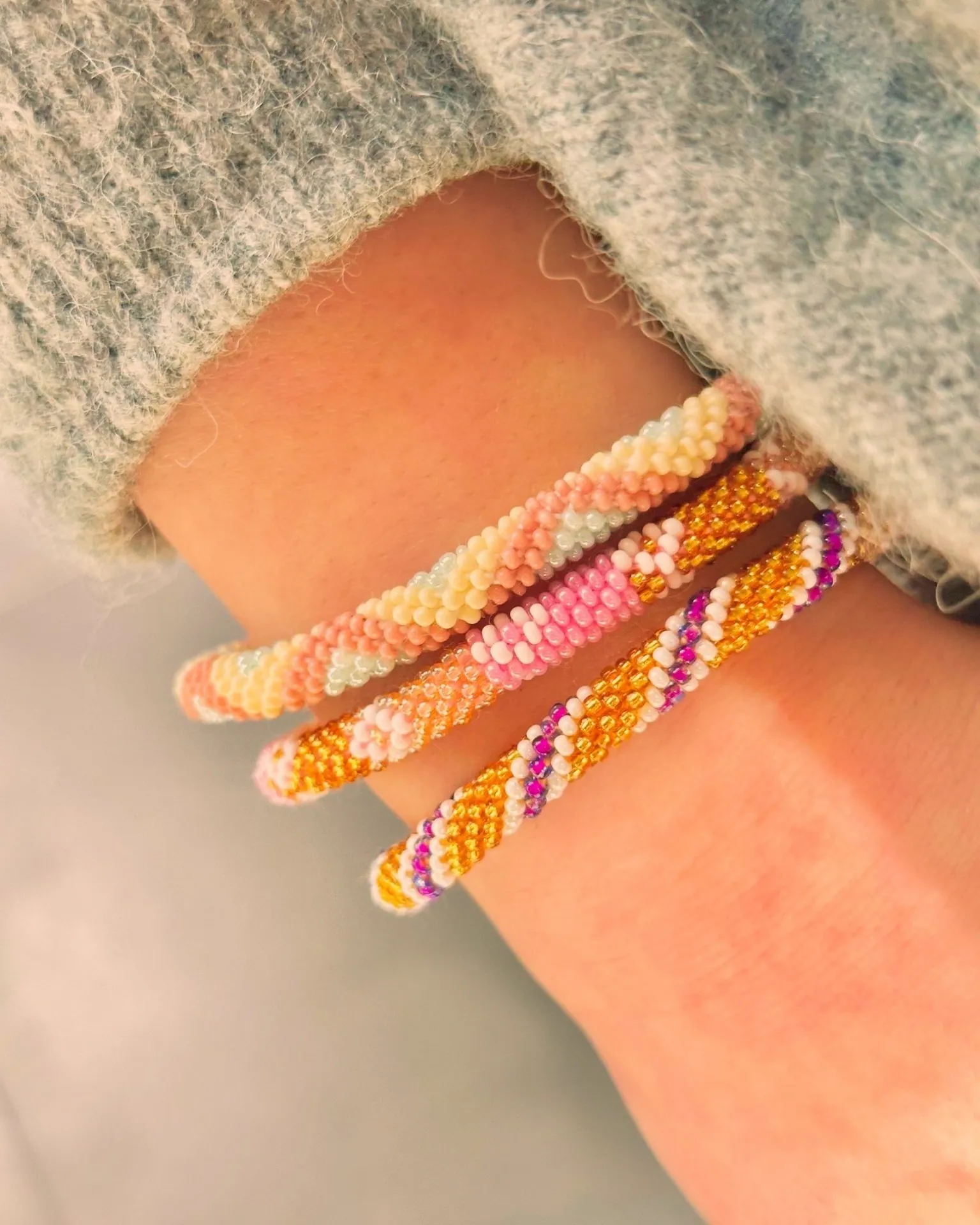Chaque bracelet fait main est conçu selon la technique du crochet, utilisant des fils de coton robustes qui garantissent souplesse et confort. Avec un diamètre intérieur ajustable de 5,5 cm à 6,5 cm, ils s’adaptent parfaitement à chaque morphologie.