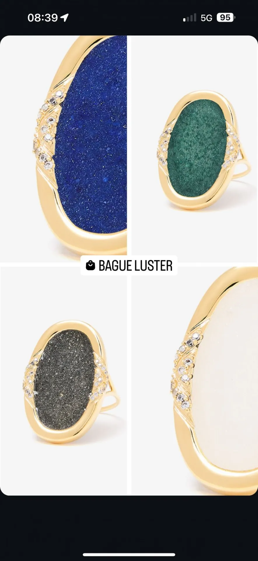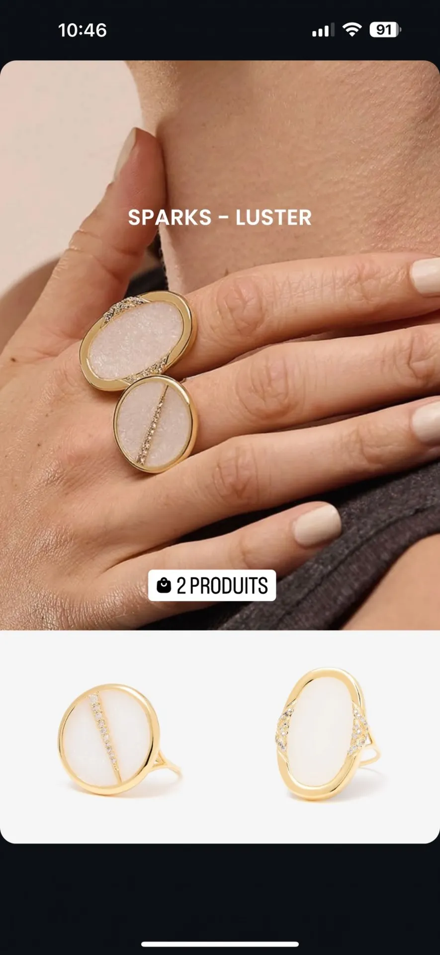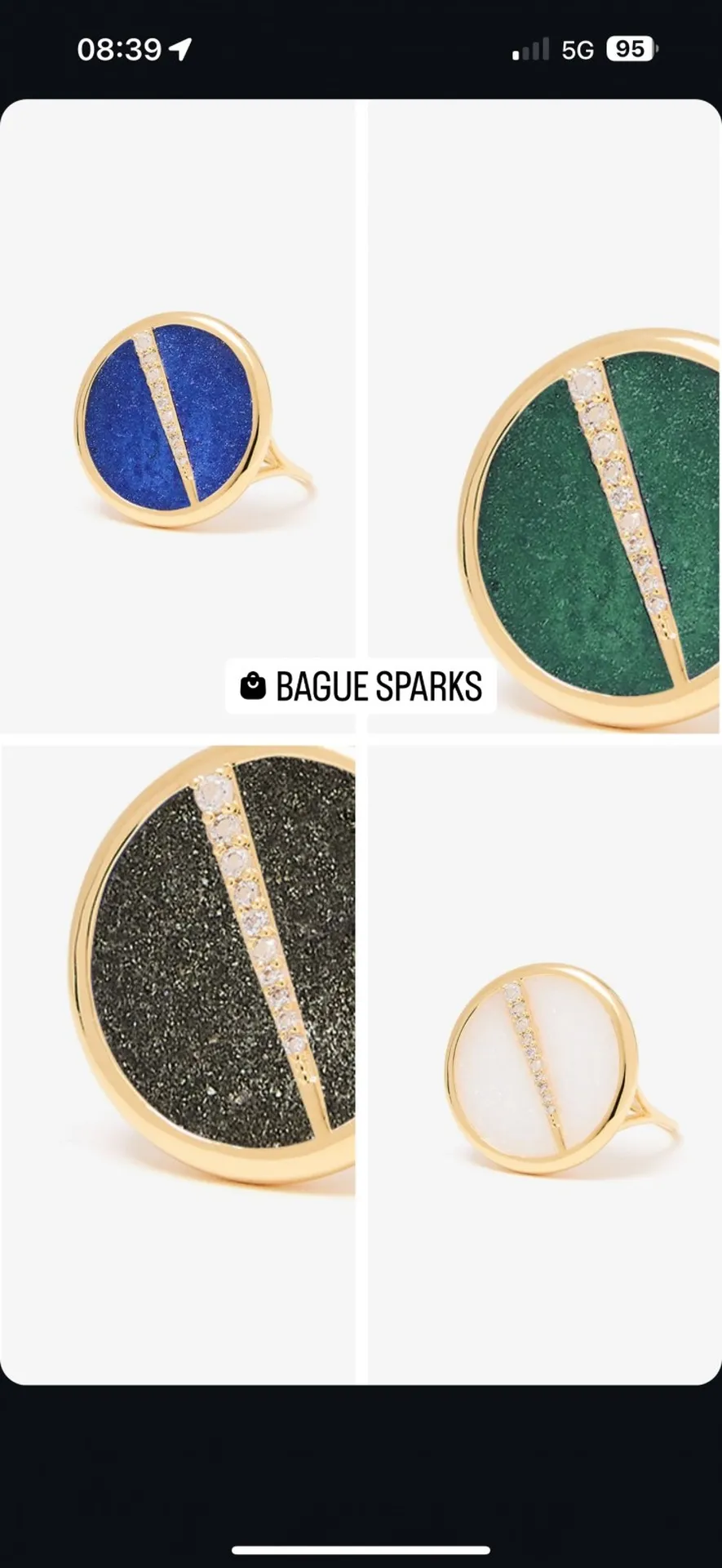 ❄️Nouveautés automne hiver 2024, les bagues rondes et colliers Sparks sont composés de fragments de pierres fines sous résine, avec une petite barrette de zirconium sur plaqué or 18 carats.