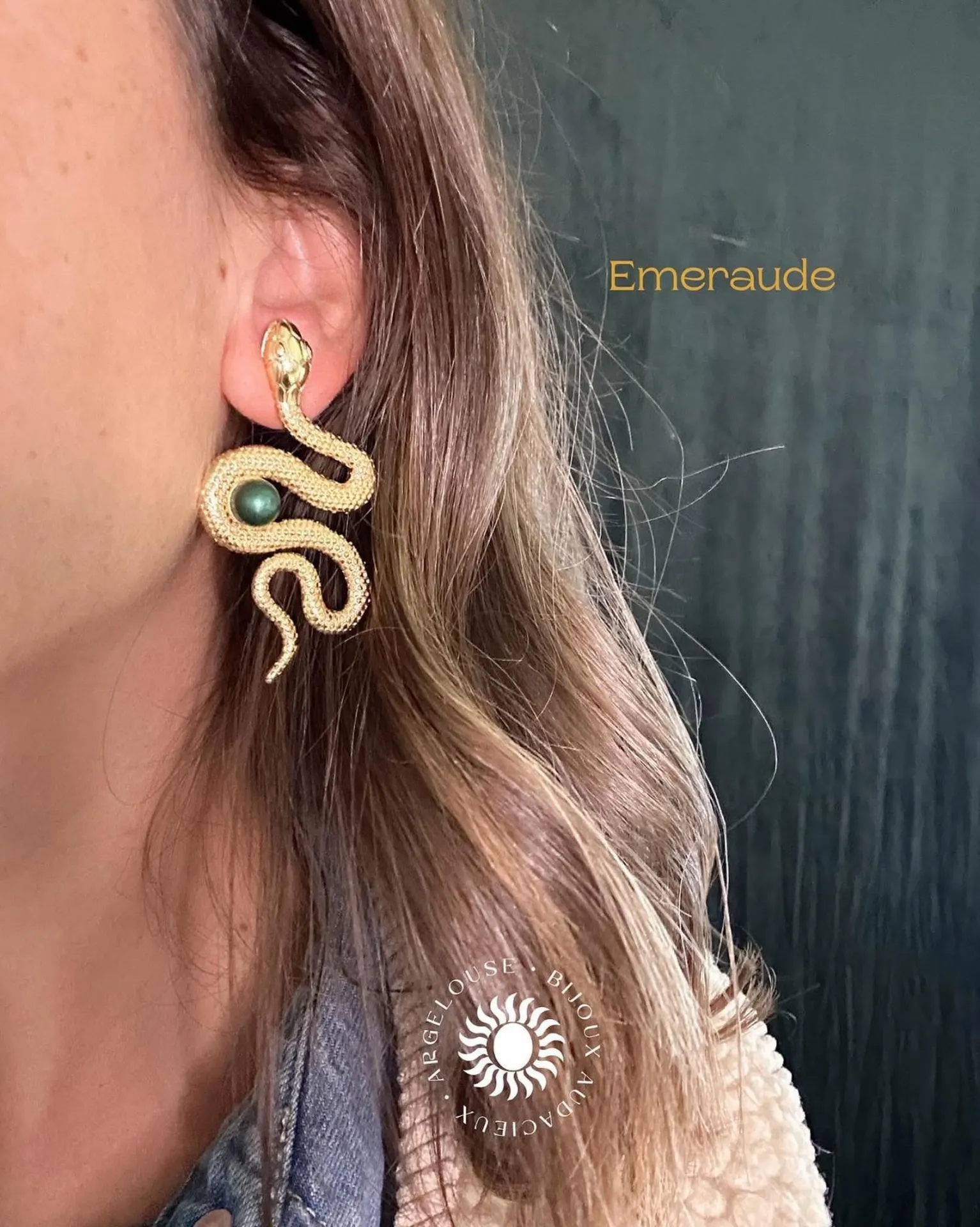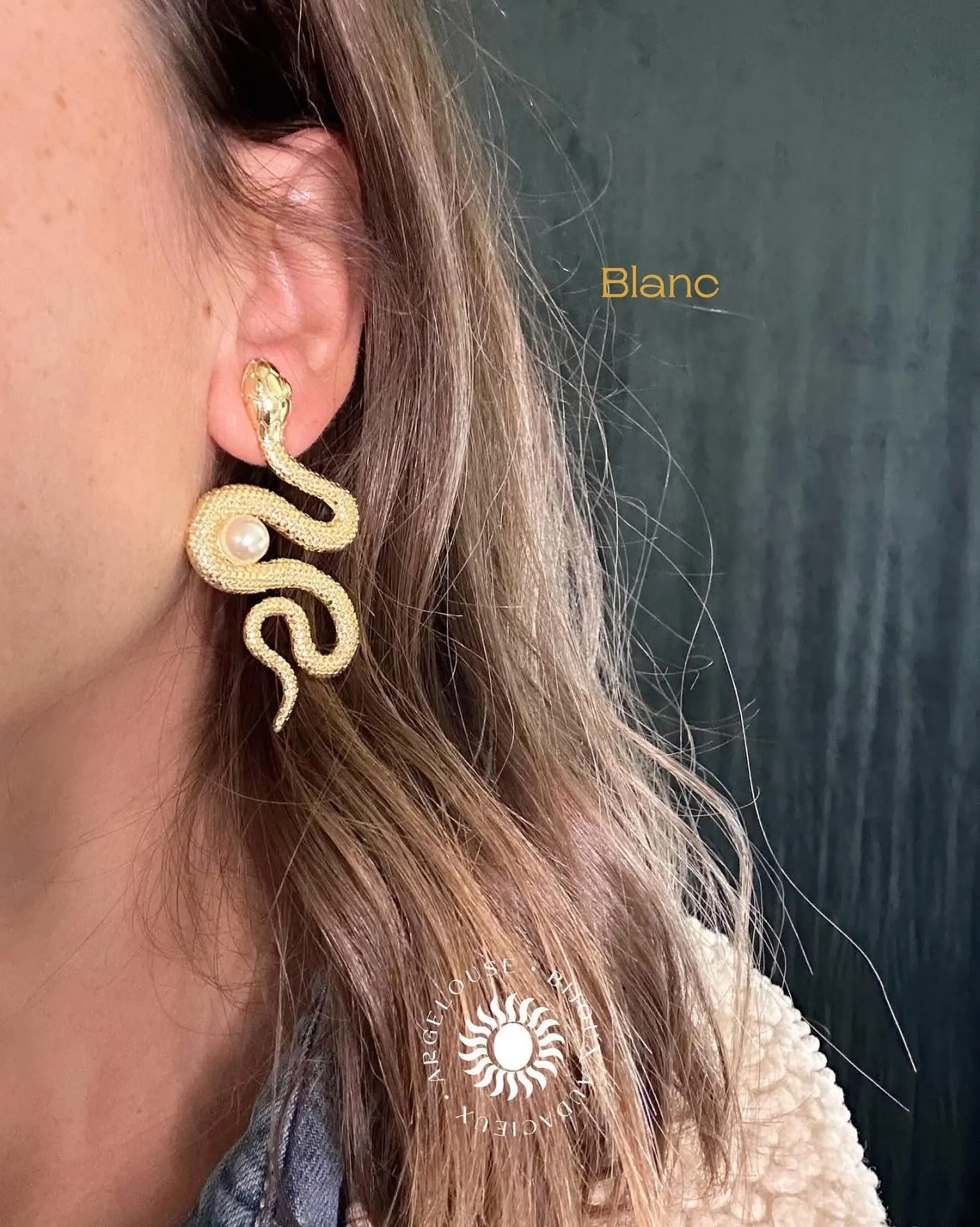 Légères et sculpturales, ces boucles épousent le lobe avec fluidité. Leur forme serpent stylisée s’enroule délicatement, telle une onde protectrice. Pensées pour le quotidien comme pour les instants précieux, elles affirment une aura mystérieuse et lumineuse.