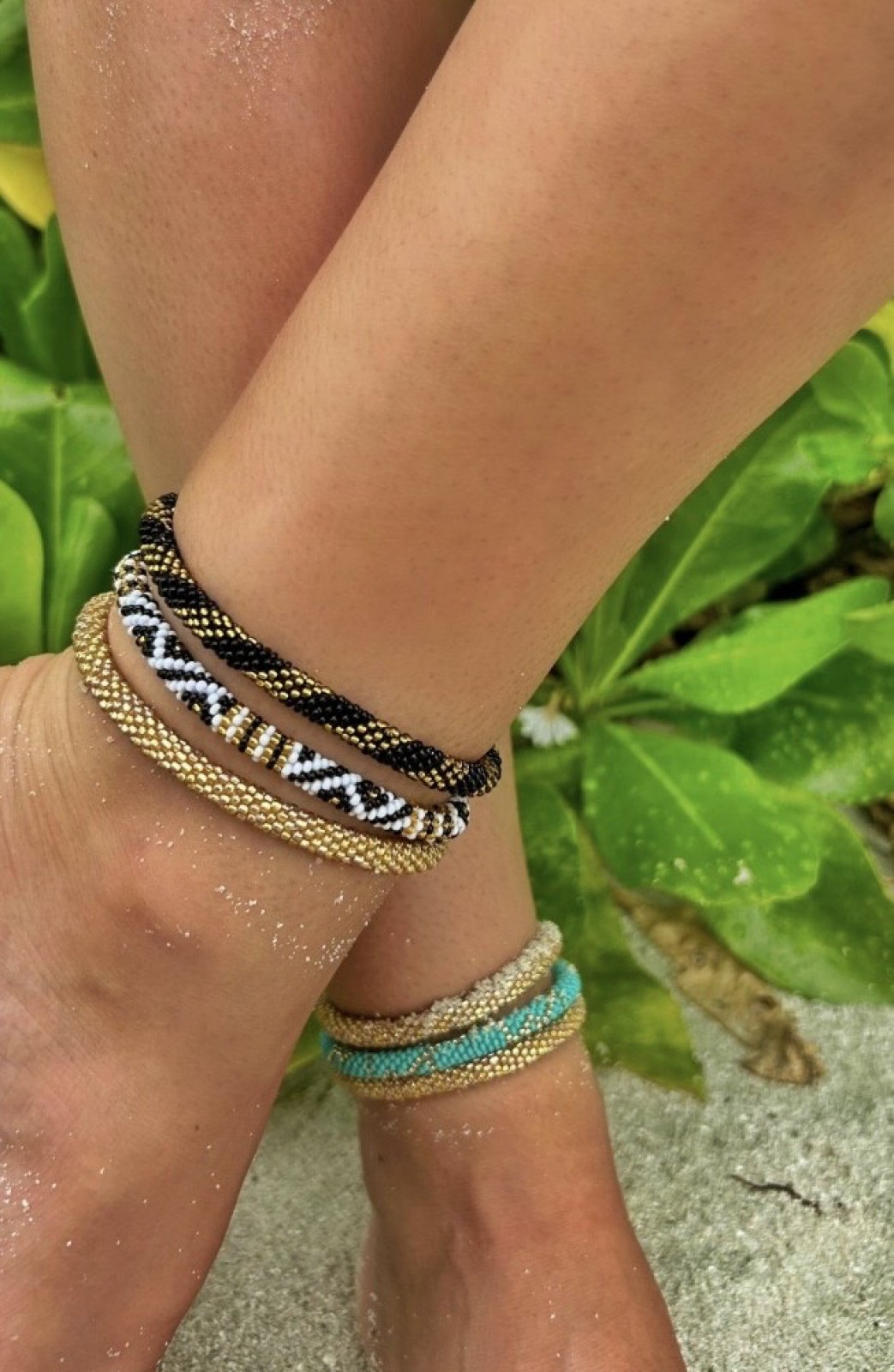 Souples, légers et ajustables, ils s’enroulent élégamment autour de la cheville. Une touche bohème et vibrante, parfaite pour vos looks d’été.