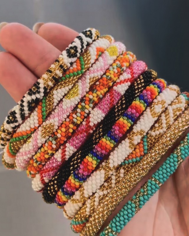 Entièrement faits main, ces bijoux venus de Katmandou allient savoir-faire traditionnel et style solaire. Chaque pièce est tissée au crochet avec du fil de coton résistant, ornée de perles de verre colorées.