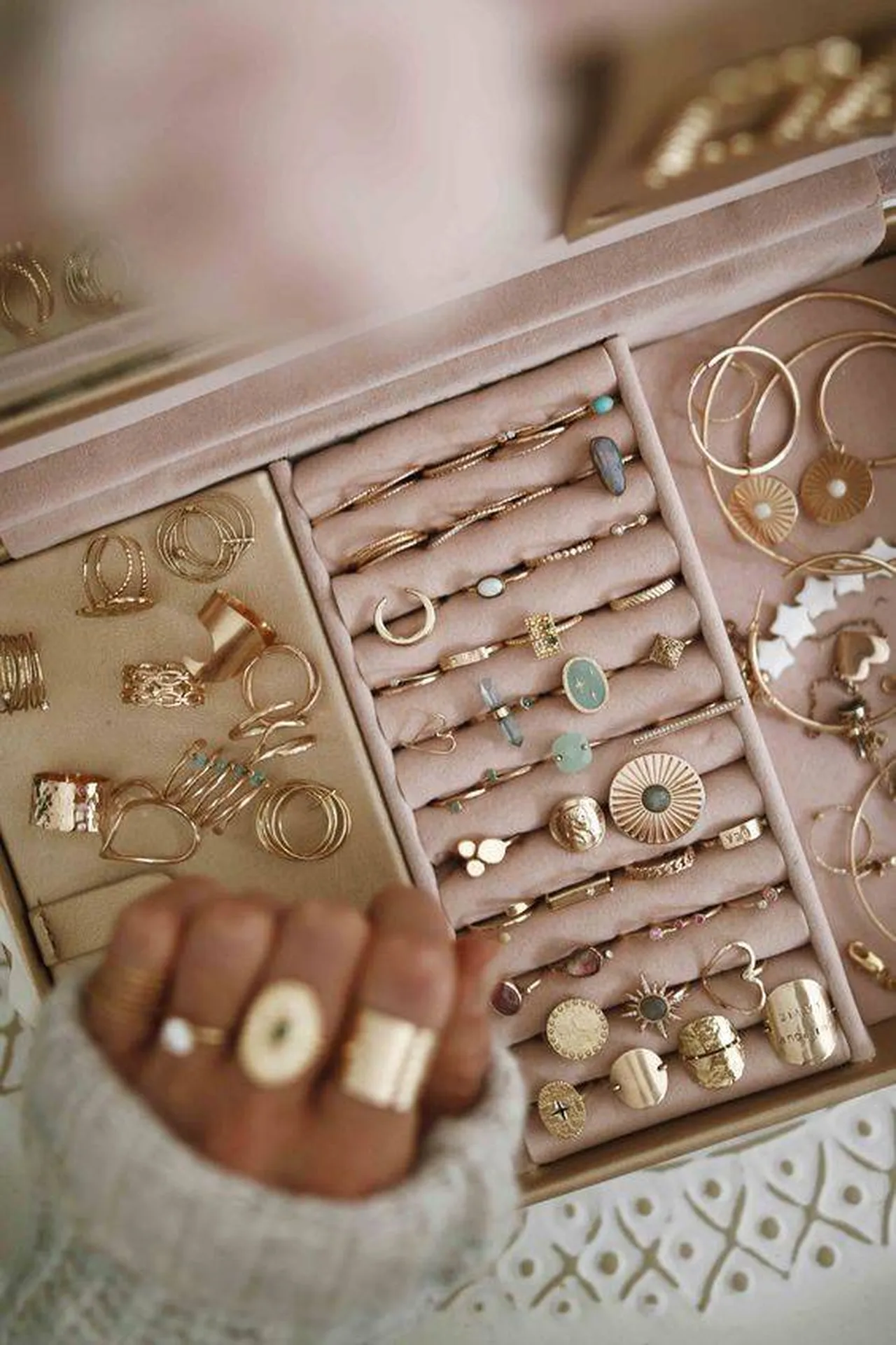 Conseil N°4 : RANGER TES BIJOUX TU DEVRAS ! Pour éviter qu'ils s'emmêlent, se rayent ou encore se fragilisent, on les range dans leurs écrins d’origine, ou dans une boîte à bijoux. En plus, c'est instagramable.