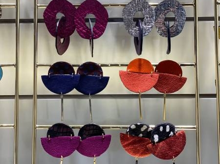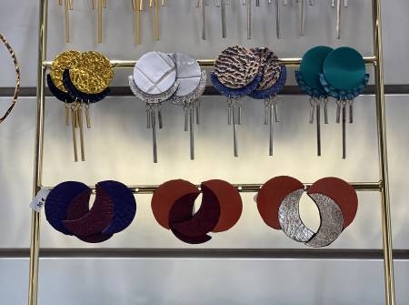 Les boucles d’oreilles de la créatrice dieppoise Elufée sont faites de cuir recyclé.Elle se fournit dans des friperies et dans les chutes de cuirs des tanneries.
