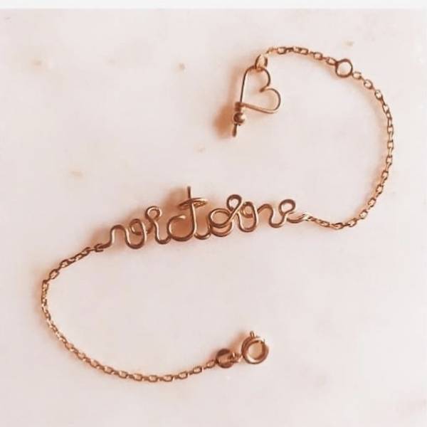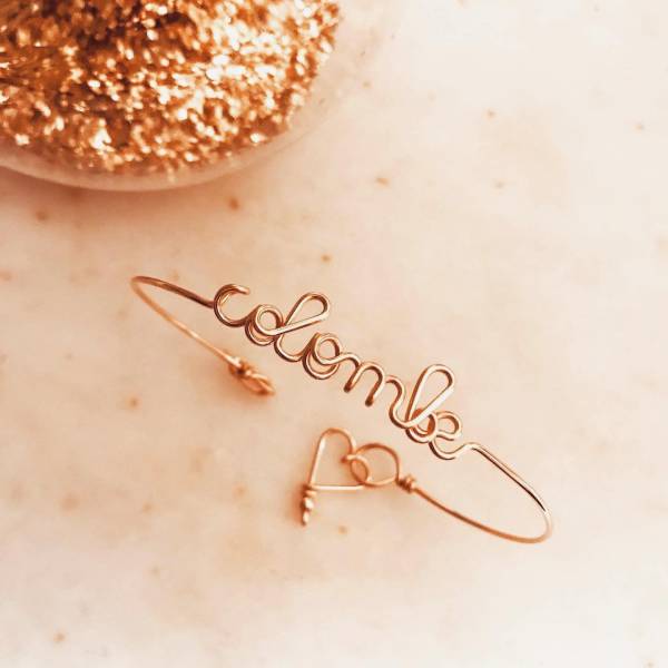 Prénoms sculptés tout au fil de métal précieux en gold filled, or rose ou argent massif 925.