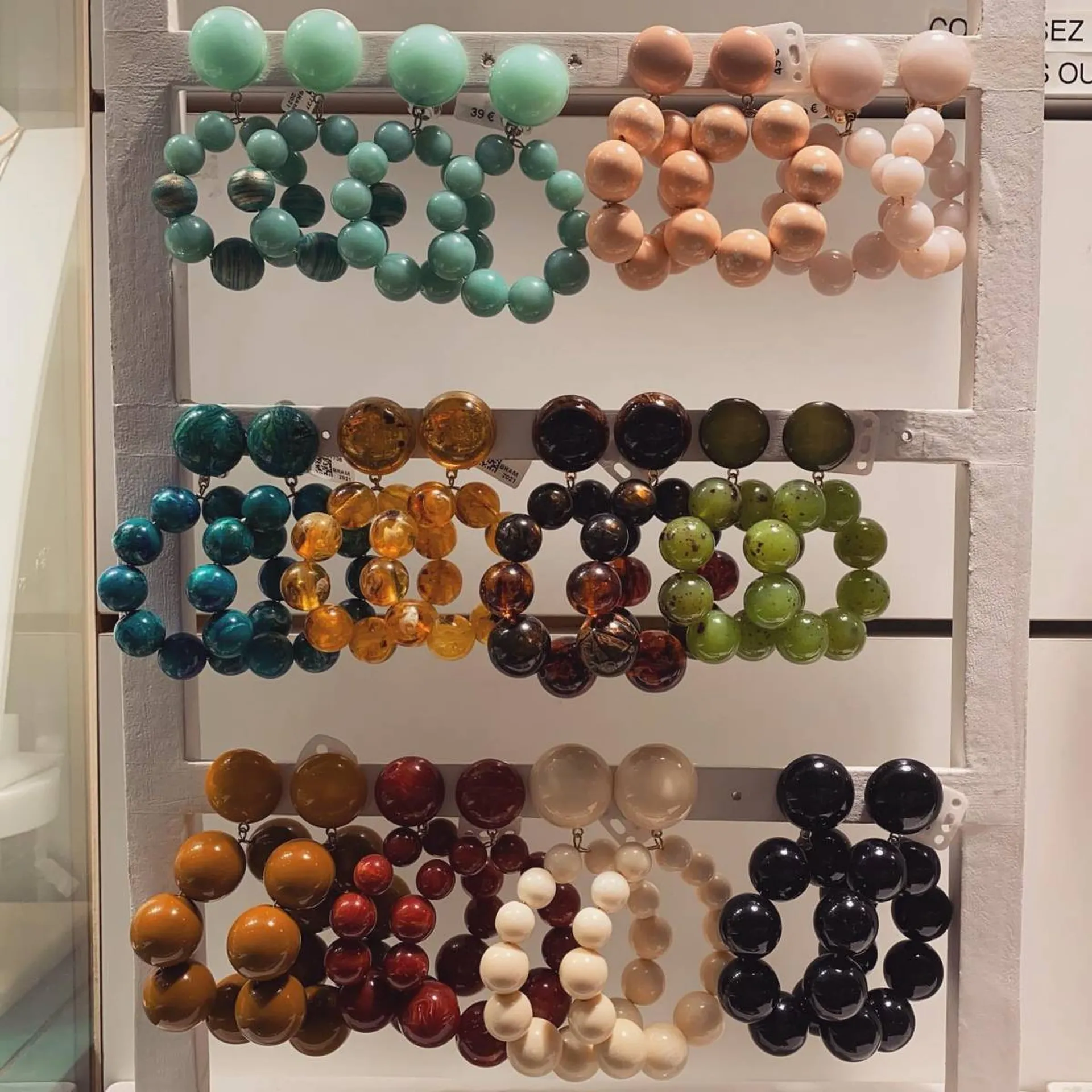Les boucles d'oreilles en acétate de cellulose, résine naturelle fabriquée à partir de l fleur de coton, vous accompagnent pour toutes les saisons, en hiver comme en été. Élégantes et puissantes, elles habillent vos tenues de la plus belle des manières.