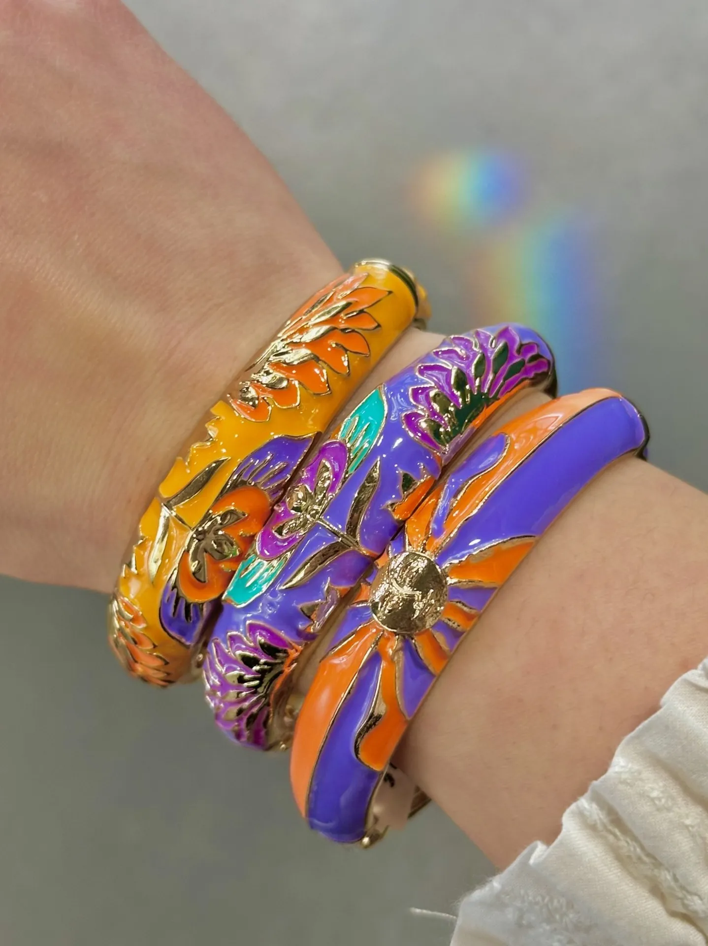 Les joncs Amok, véritables icônes de la marque, se réinventent cette saison dans des teintes éclatantes et des motifs vibrants, parfaits pour accessoiriser vos tenues estivales. Fabriqués en France, plaqués or et émaillés à la main, ils allient le raffinement de l’artisanat à un style résolument contemporain.