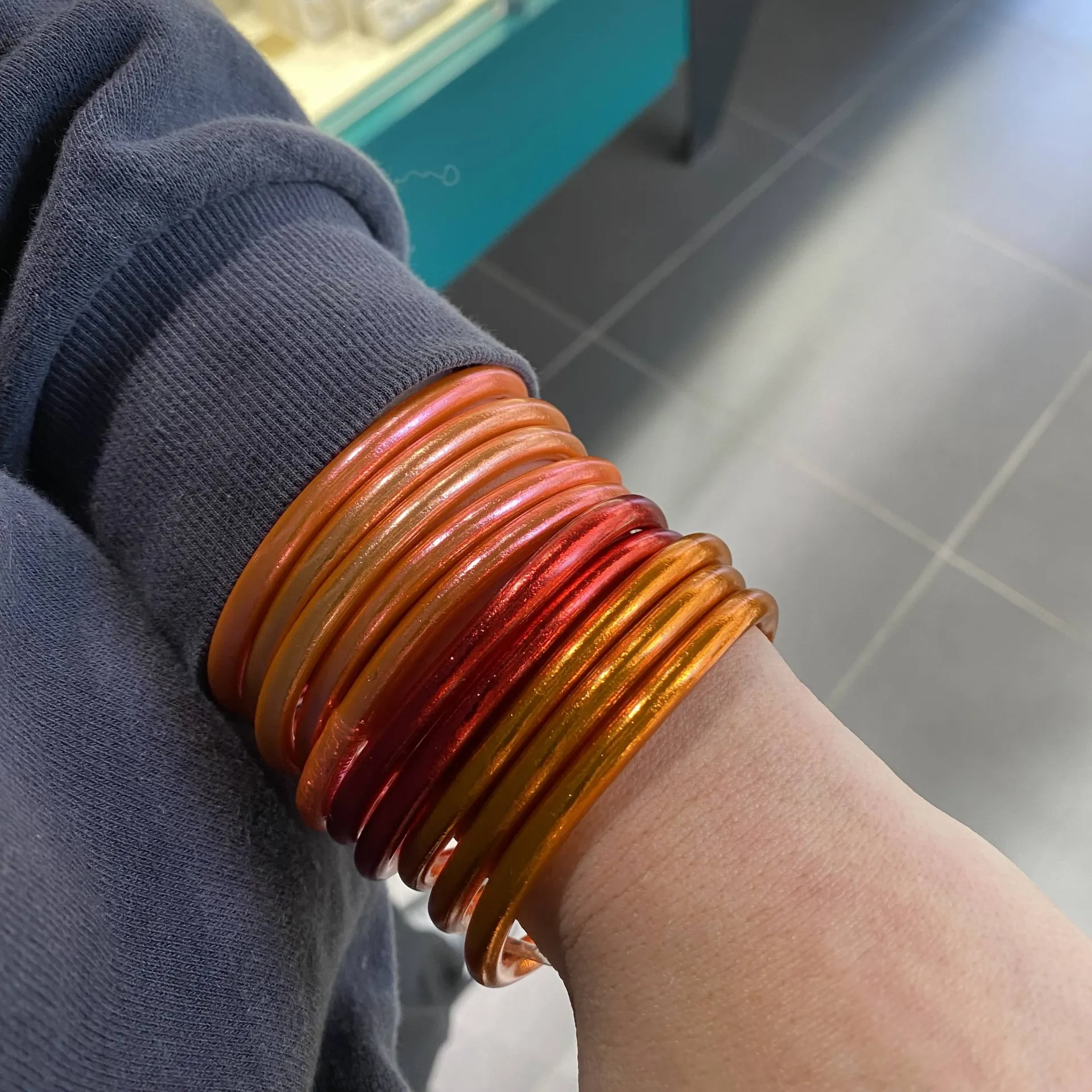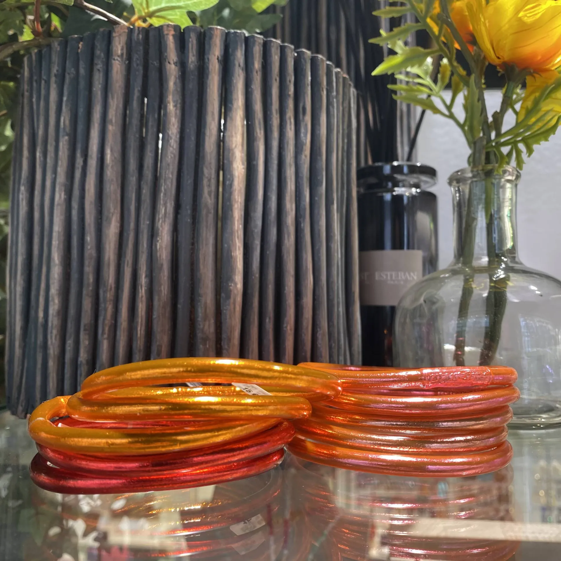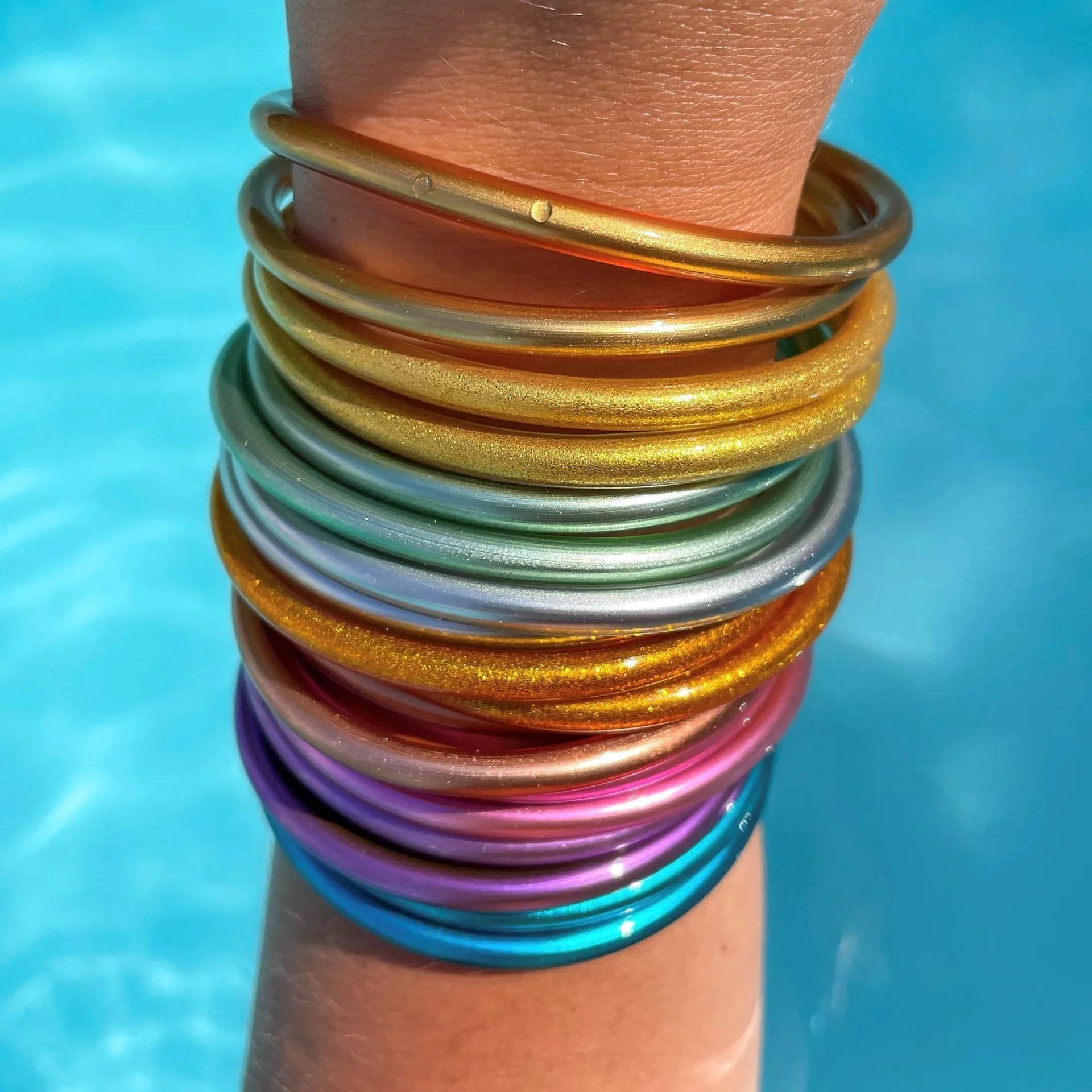 Qu'est ce que les joncs bouddhistes ? Ces bracelets remplis à la feuille d'or, considérés comme des amulettes porte-bonheur par les bouddhistes, sont souples, légers et s'accumulent parfaitement à vos poignets.