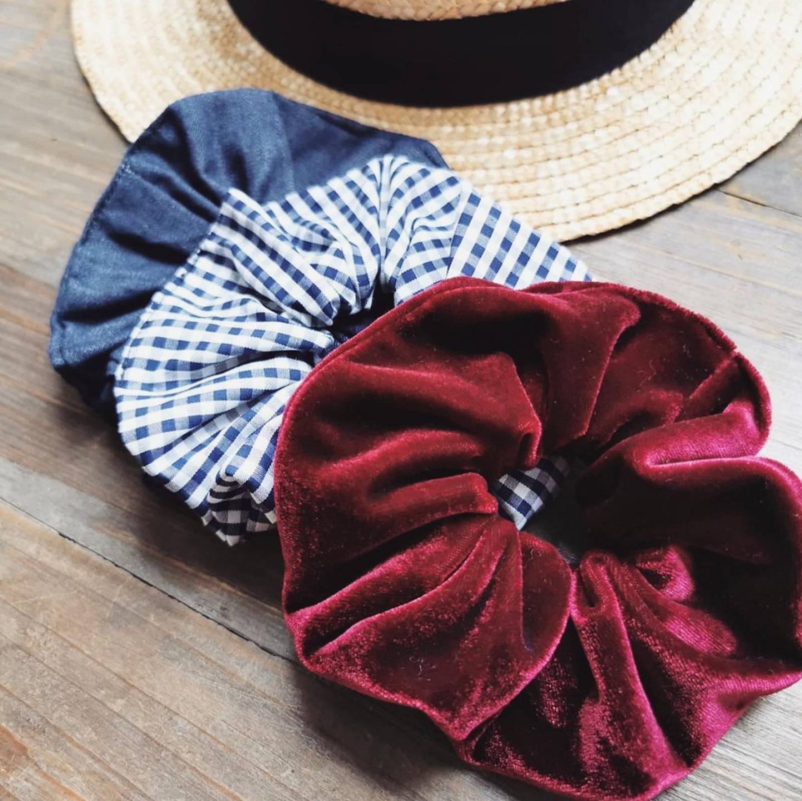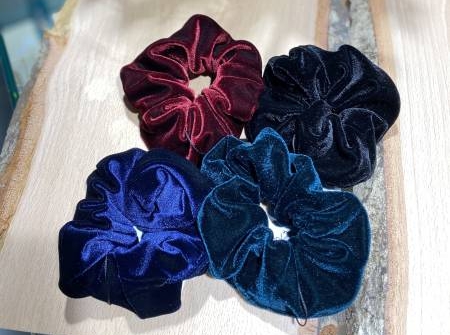 Les chouchous, foulchies (avec ruban) et maxi chouchou en velours.