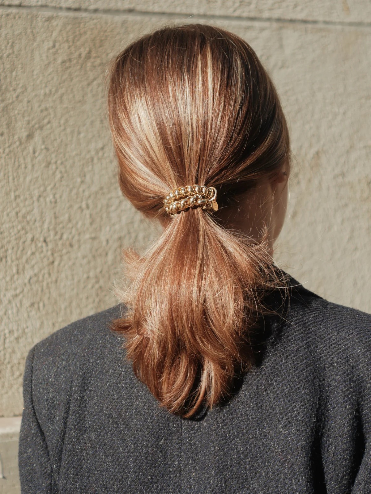 Fabriqué en France, le Bichou est un chouchou en chaîne au design innovant, réalisé avec un élastique haut de gamme, résistant et durable. Multifonctionnel, il se porte :
