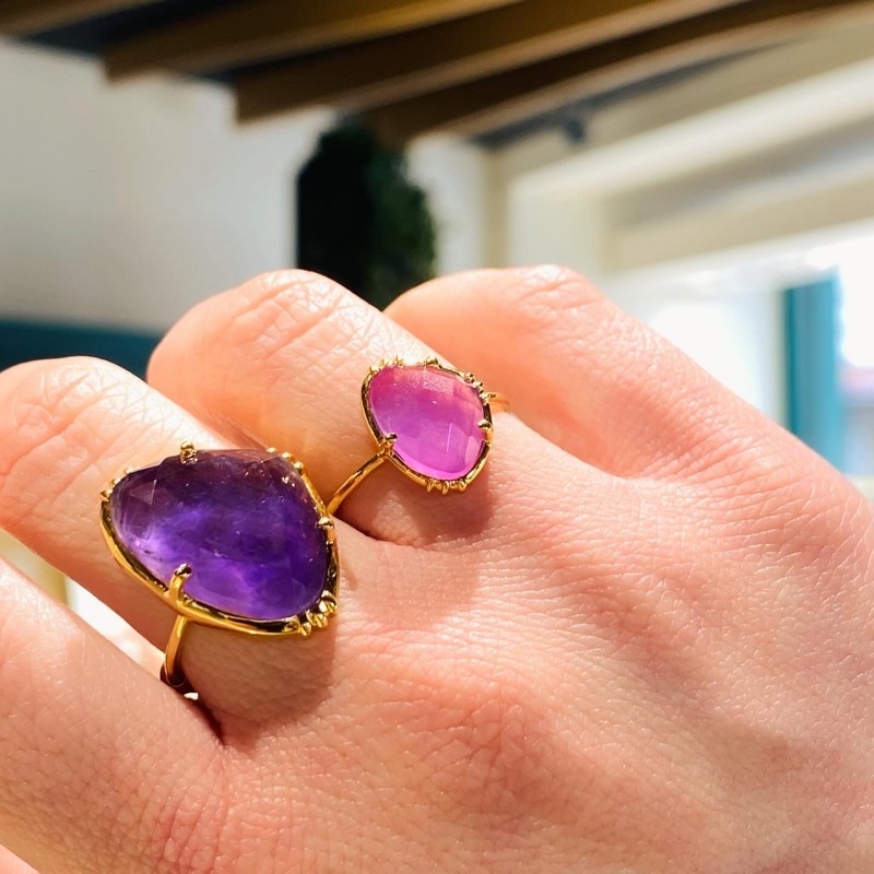 La créatrice française Laurence et sa fille Salomé de la marque de bijoux haute fantaisie proposent des bagues ajustables avec un système génialissime de mise à taille. Les bagues restent fermées sous le doigt pour un confort optimal.