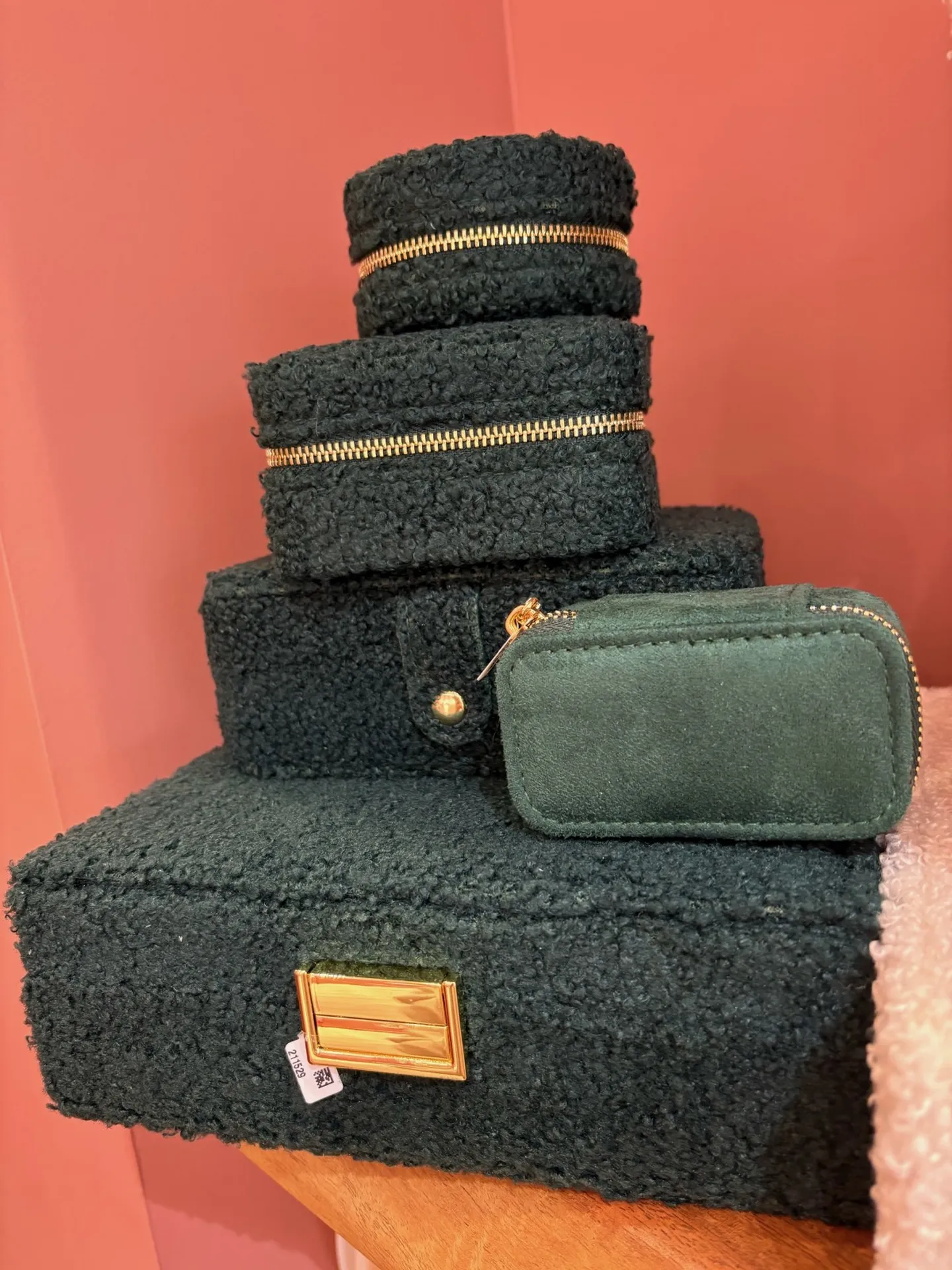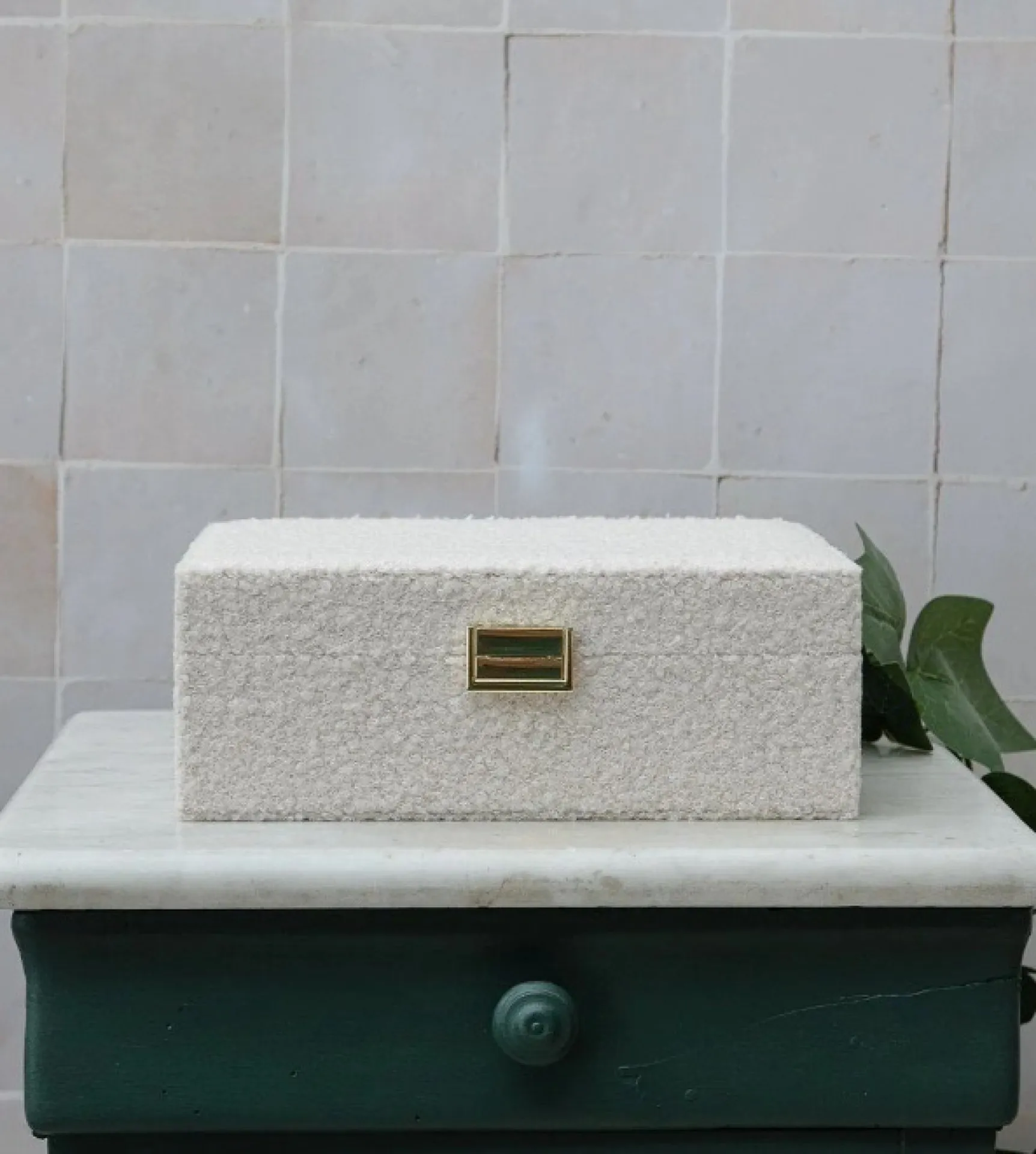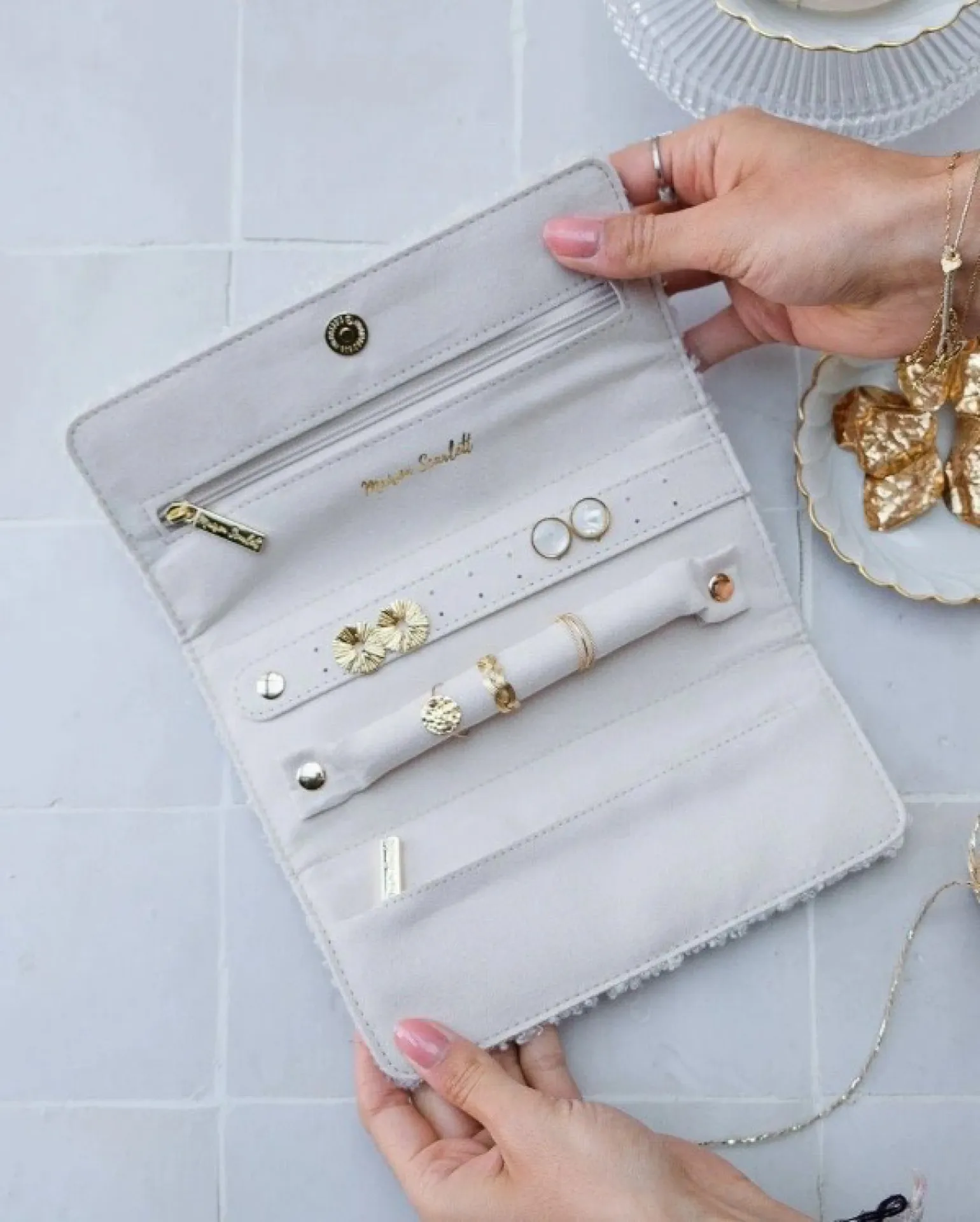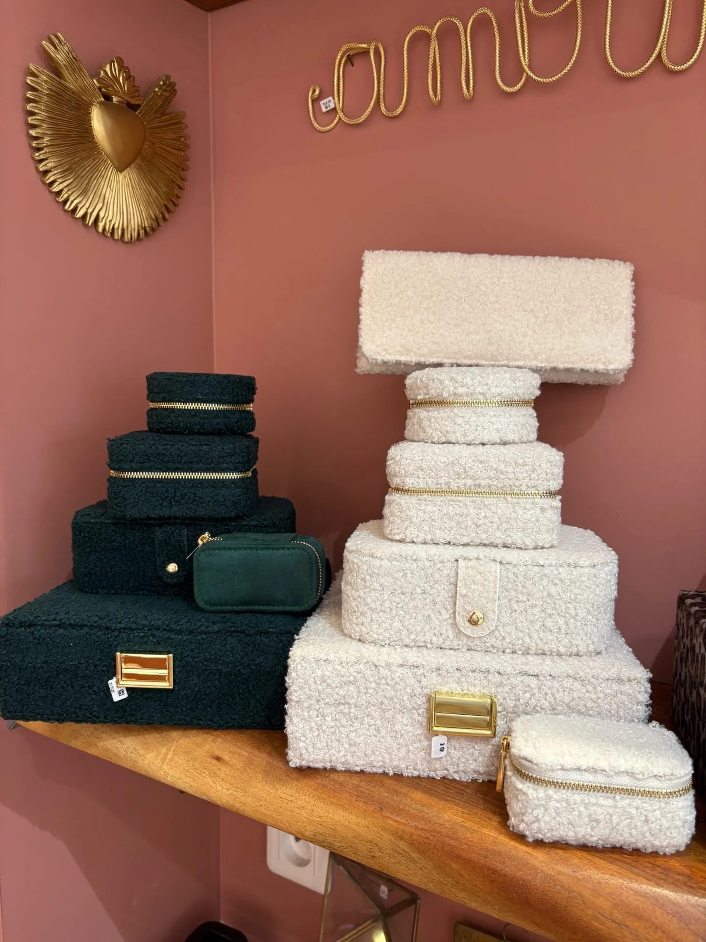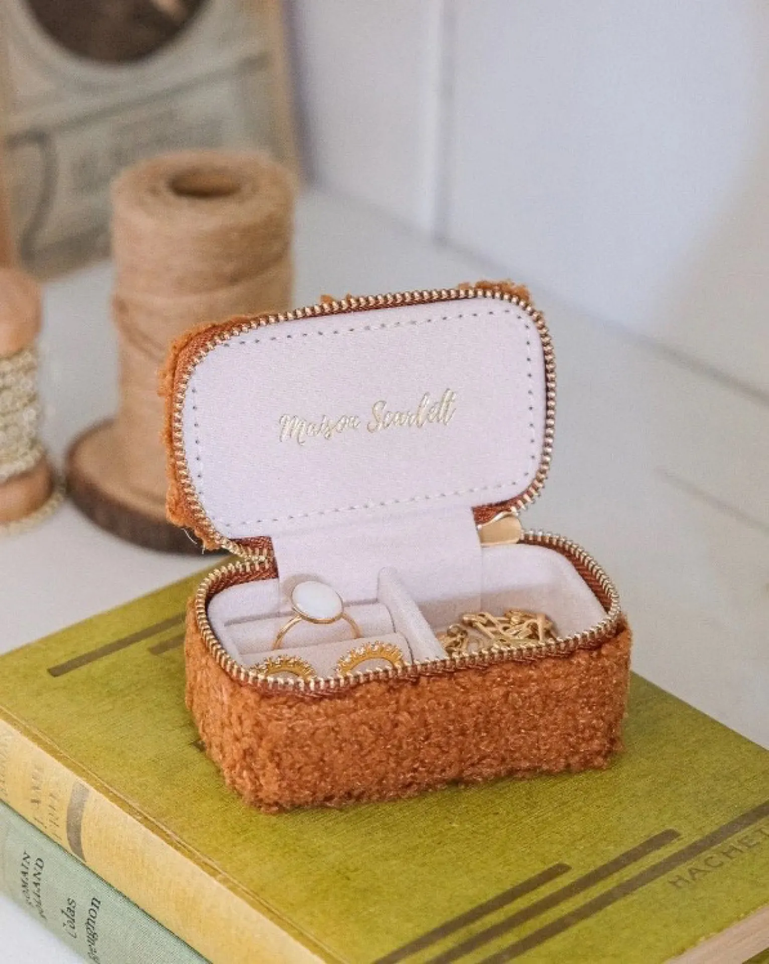 MAISON SCARLETT propose plusieurs tailles de boîtes à bijoux, de la mini version de voyage à la grande boîte compartimentée idéale pour la maison.