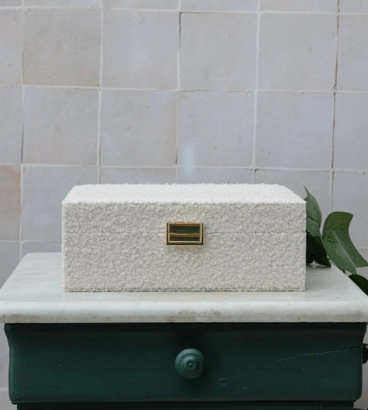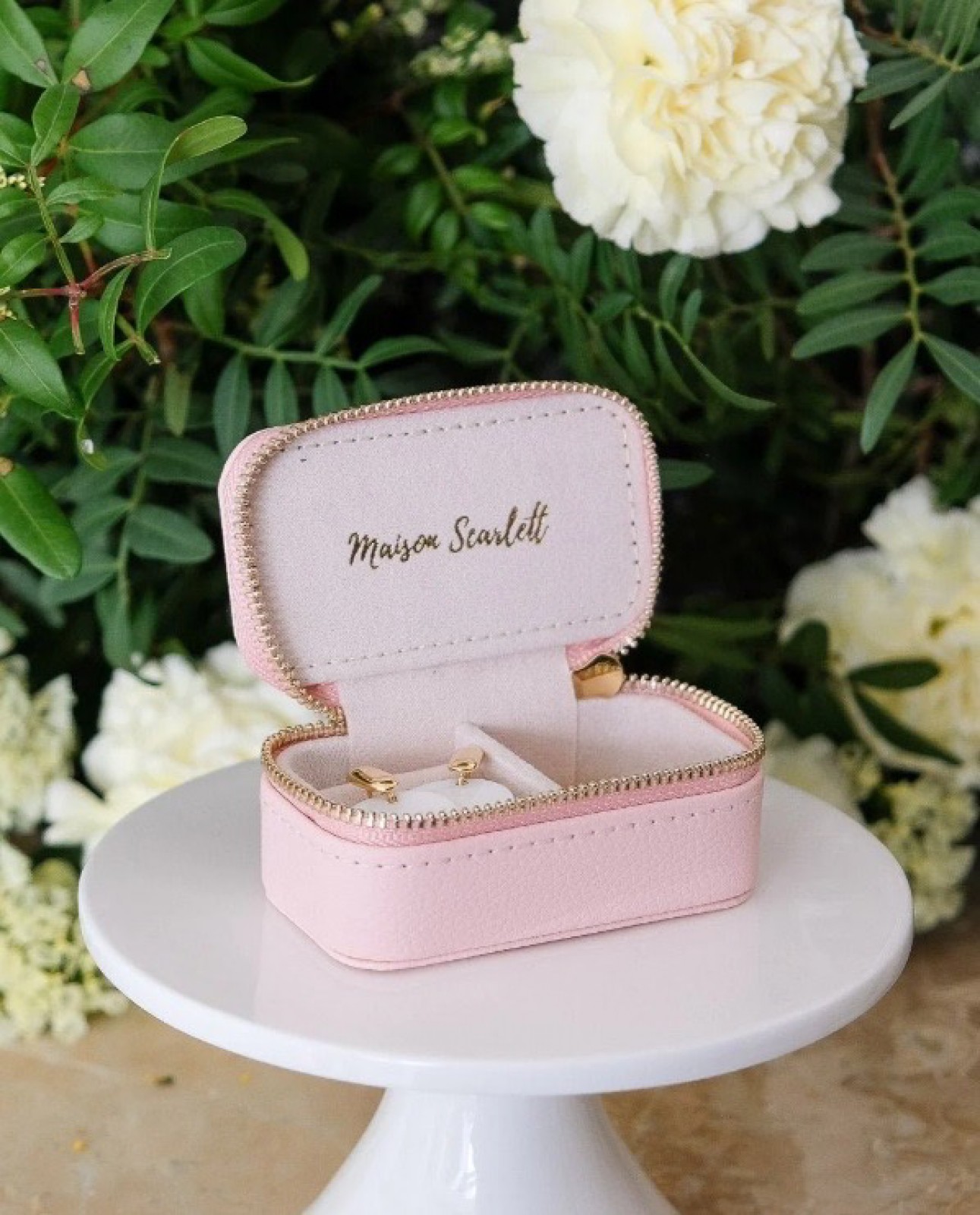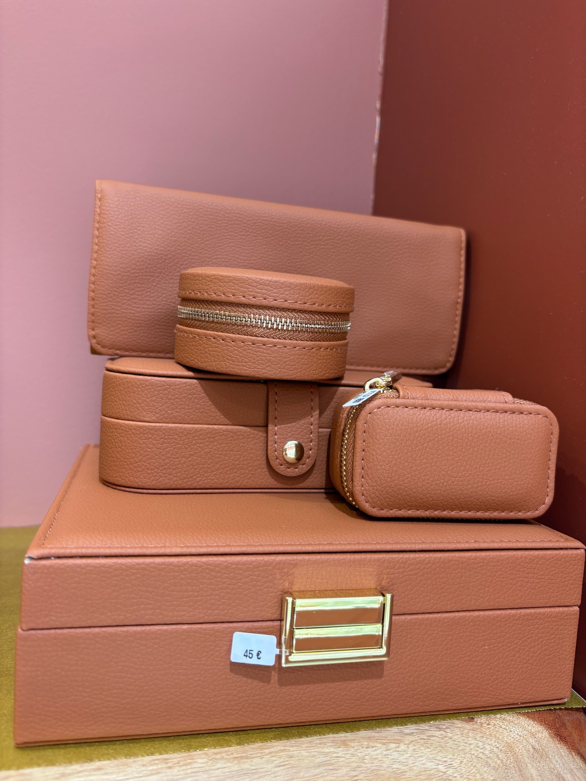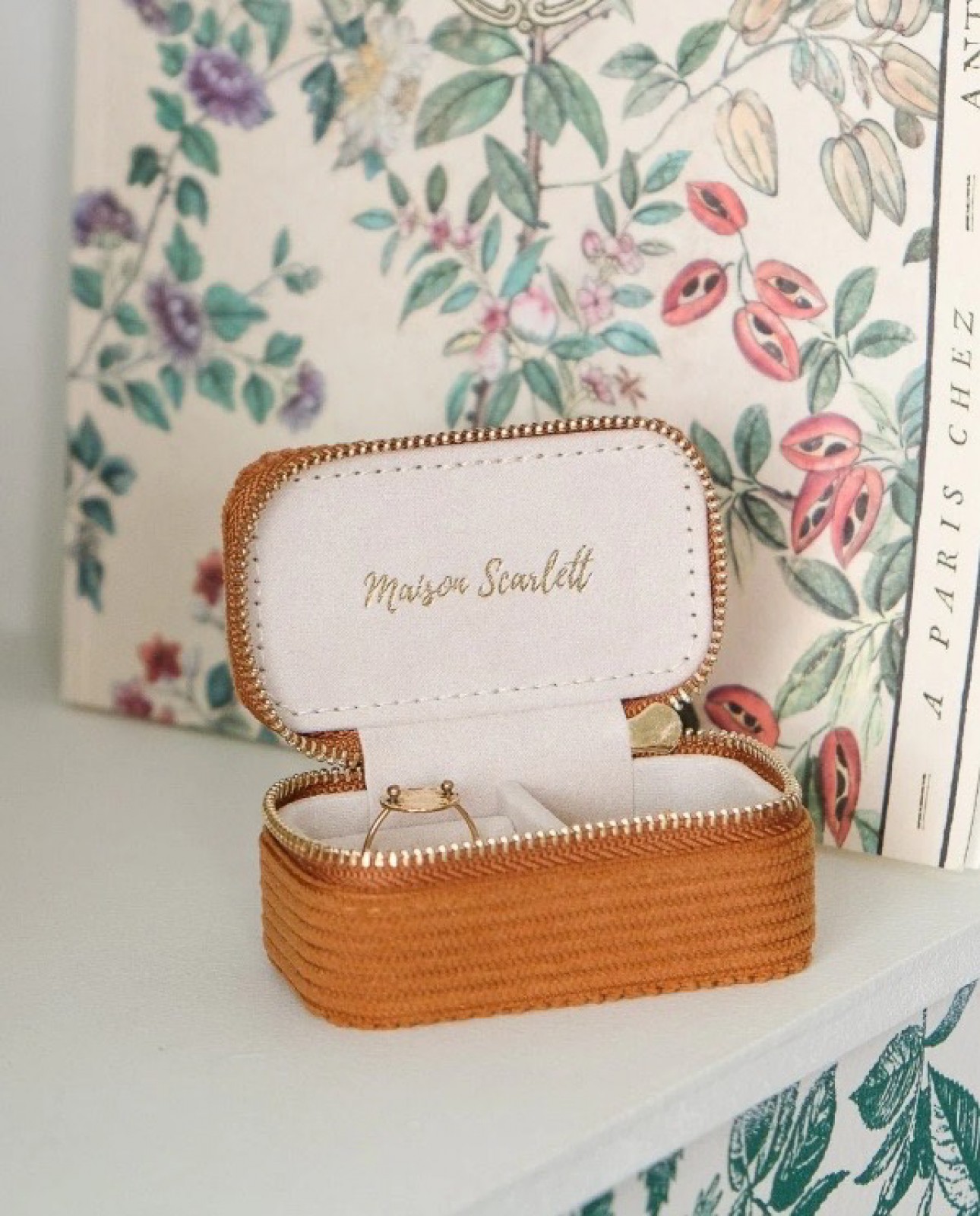 MAISON SCARLETT propose plusieurs tailles de boîtes à bijoux, de la mini version de voyage à la grande boîte compartimentée idéale pour la maison.