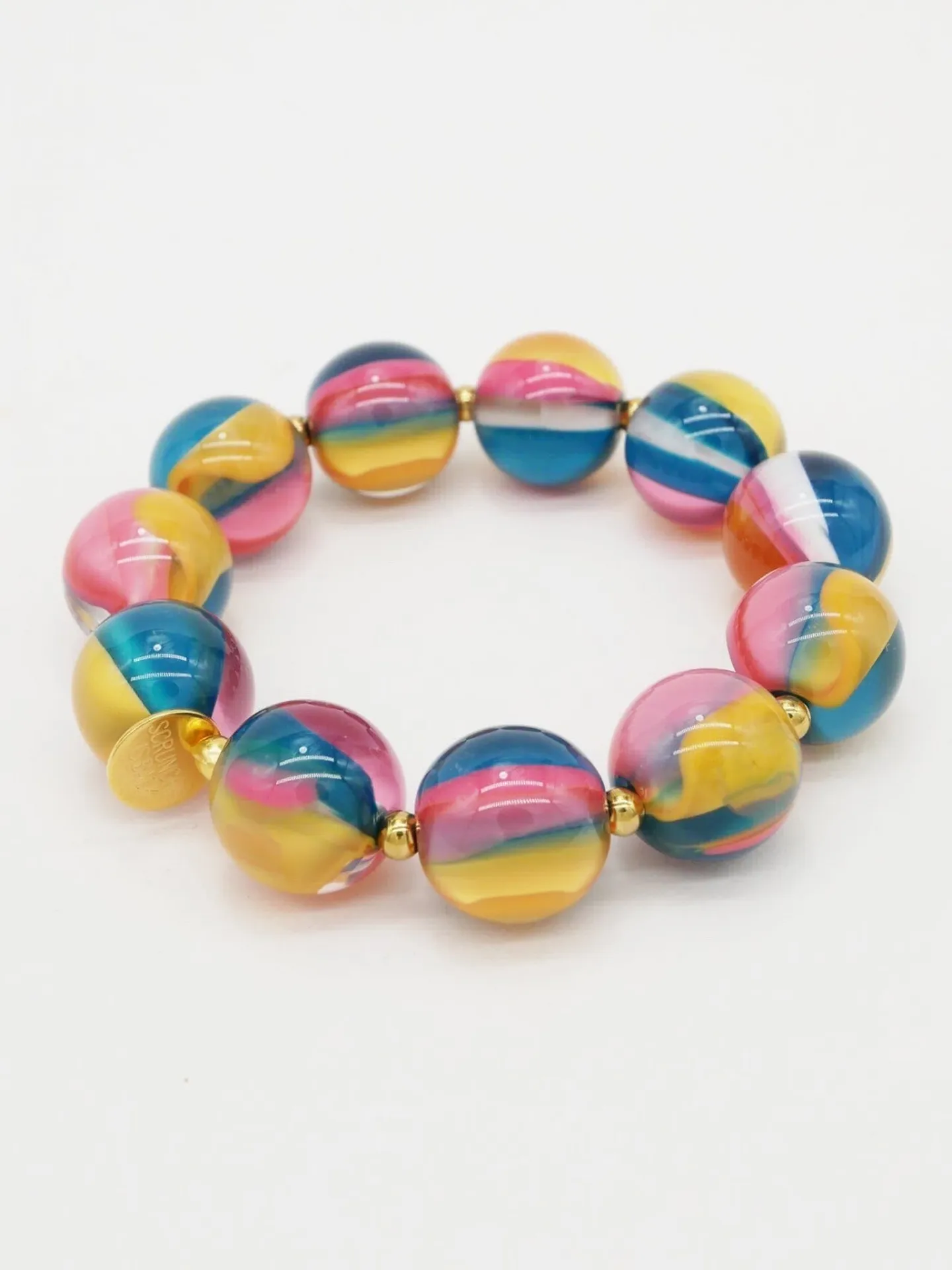 Marbré lilas aux nuances subtiles, vert doux lumineux, multicolore graphique aux accents pop… Chaque modèle affirme une personnalité. Finition mate ou brillante, perles rondes oversize, séparateurs dorés : le détail fait la différence. Même avec un tee-shirt blanc ou une maille simple, l’effet fonctionne immédiatement.