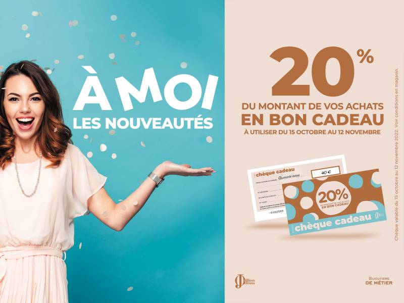 Du 15 septembre au 14 octobre, pour tout achat d’un minimum de 59€, recevez un bon d’achat de 20% du montant total.