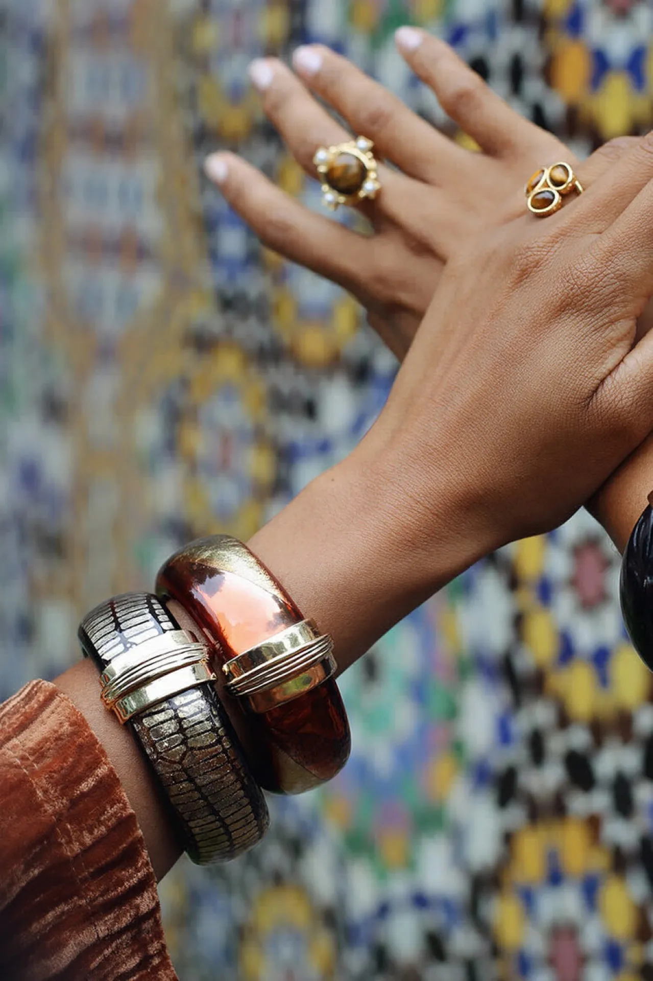 Les manchettes de la collection Paradis bénéficient d’un diamètre intérieur entre 55 mm et 65 mm, selon le modèle, et intègrent une ouverture à ressort pour un enfilage facile et confortable. Chaque pièce est fabriquée à la main, parfois avec un travail d’émaillage ou d’artisanat méticuleux, ce qui garantit que chaque manchette est unique.