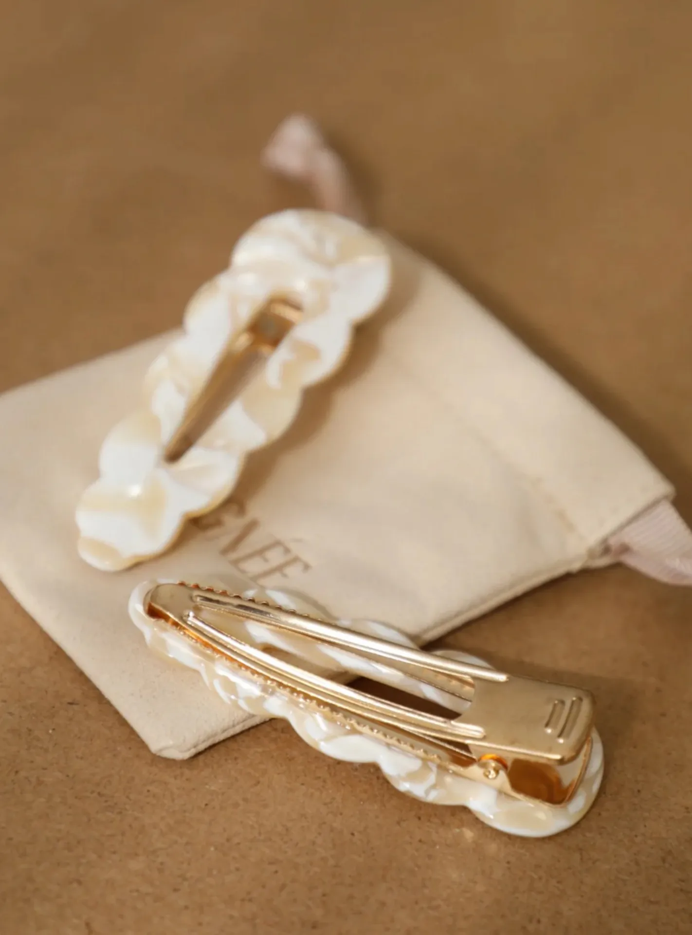 Les barrettes sont vendues à la paire, parfaites pour accessoiriser vos looks du quotidien ou vos coiffures plus sophistiquées. Les pics à cheveux, eux, ajoutent une touche élégante à un chignon flou ou un bun serré.