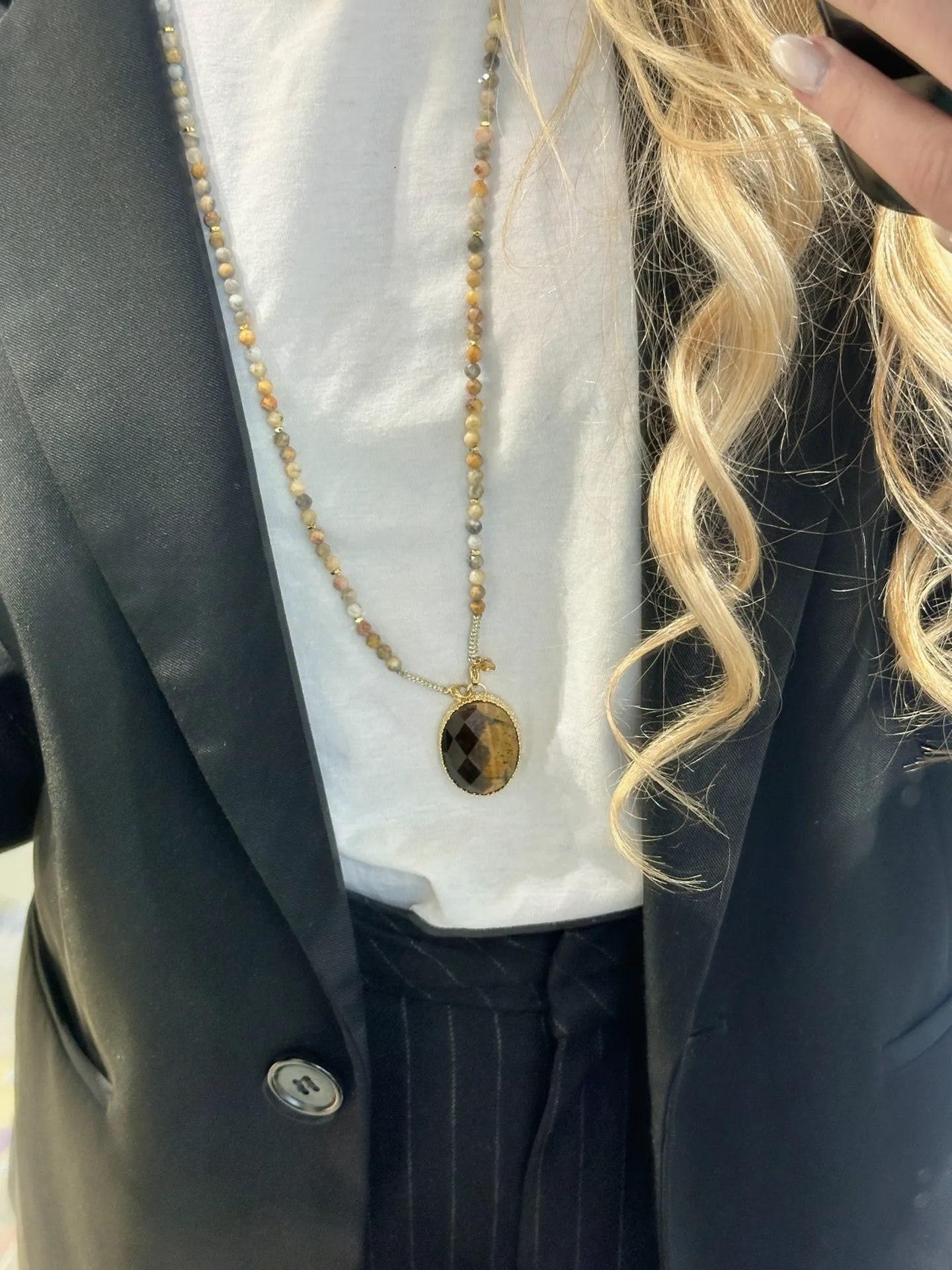 Un sautoir bien choisi fait toute la différence. Il allonge le buste, attire la lumière et donne ce petit twist mode que l’on adore. Tourmaline, quartz, agate, aventurine… chaque pierre révèle des nuances subtiles qui se répondent avec élégance.